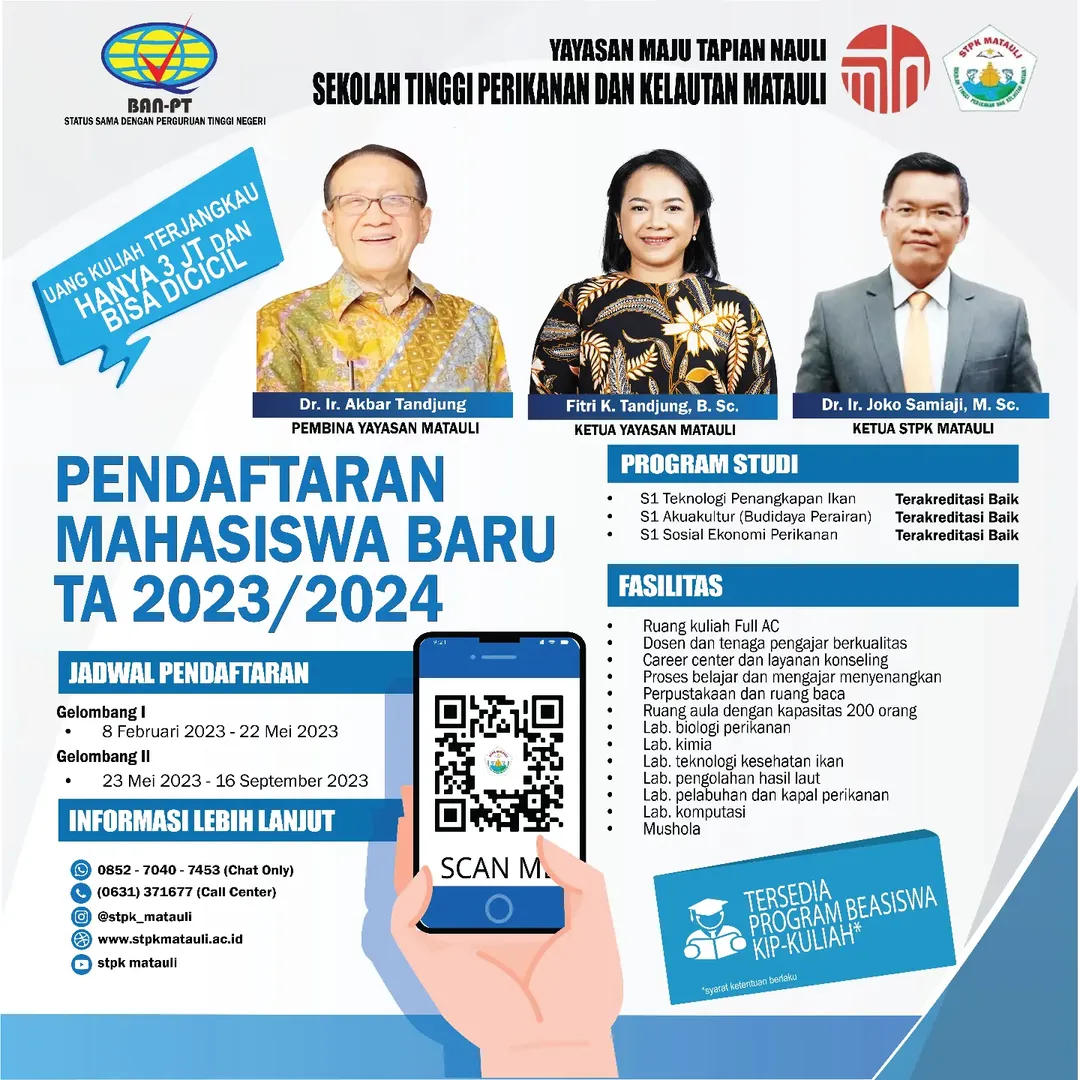 Kami mengajak generasi muda untuk bergabung bersama STPK Matauli, kampus vokasi bidang perikanan dan kelautan yang berkomitmen mencetak lulusan unggul, berintegritas, dan siap bersaing di dunia maritim modern.