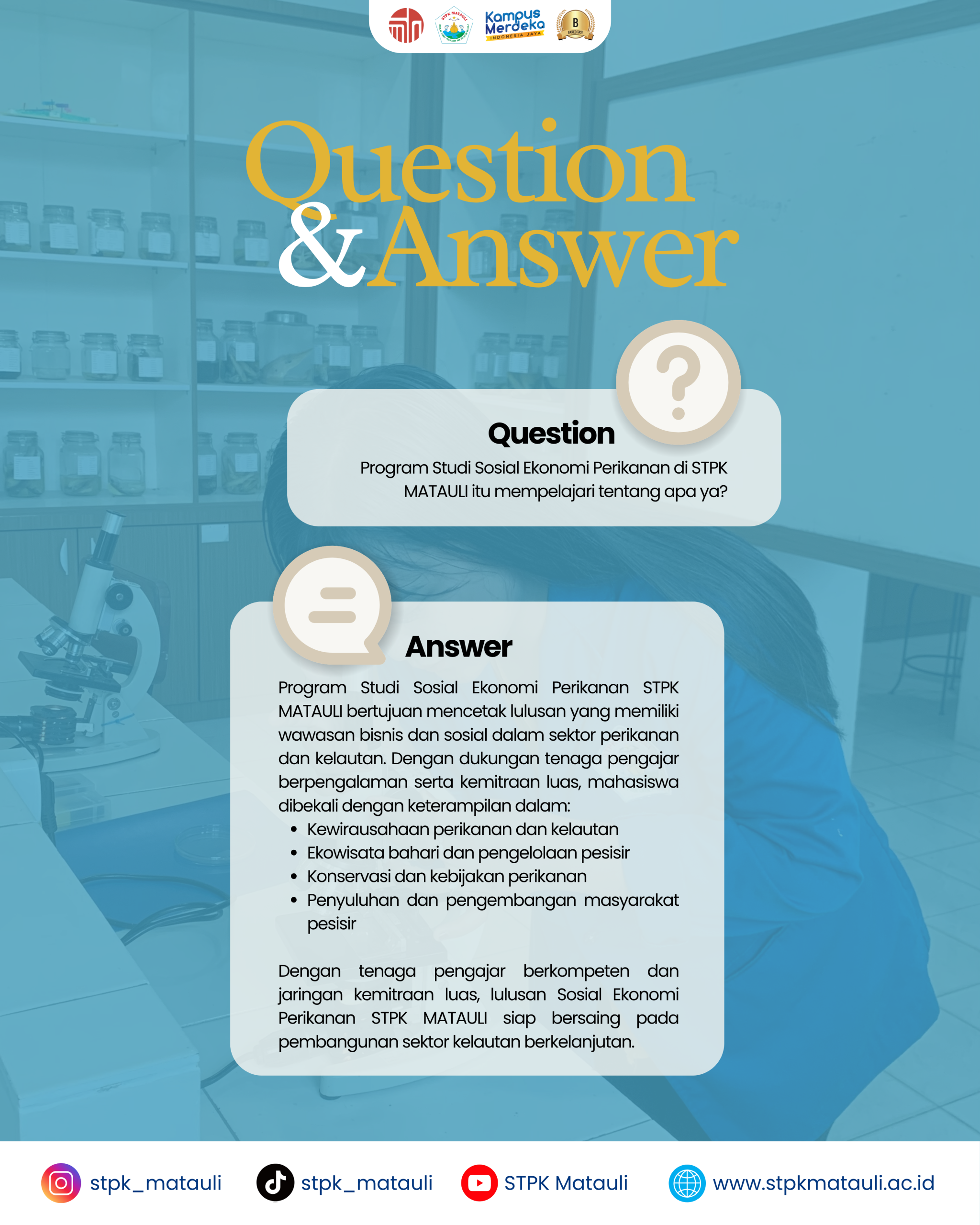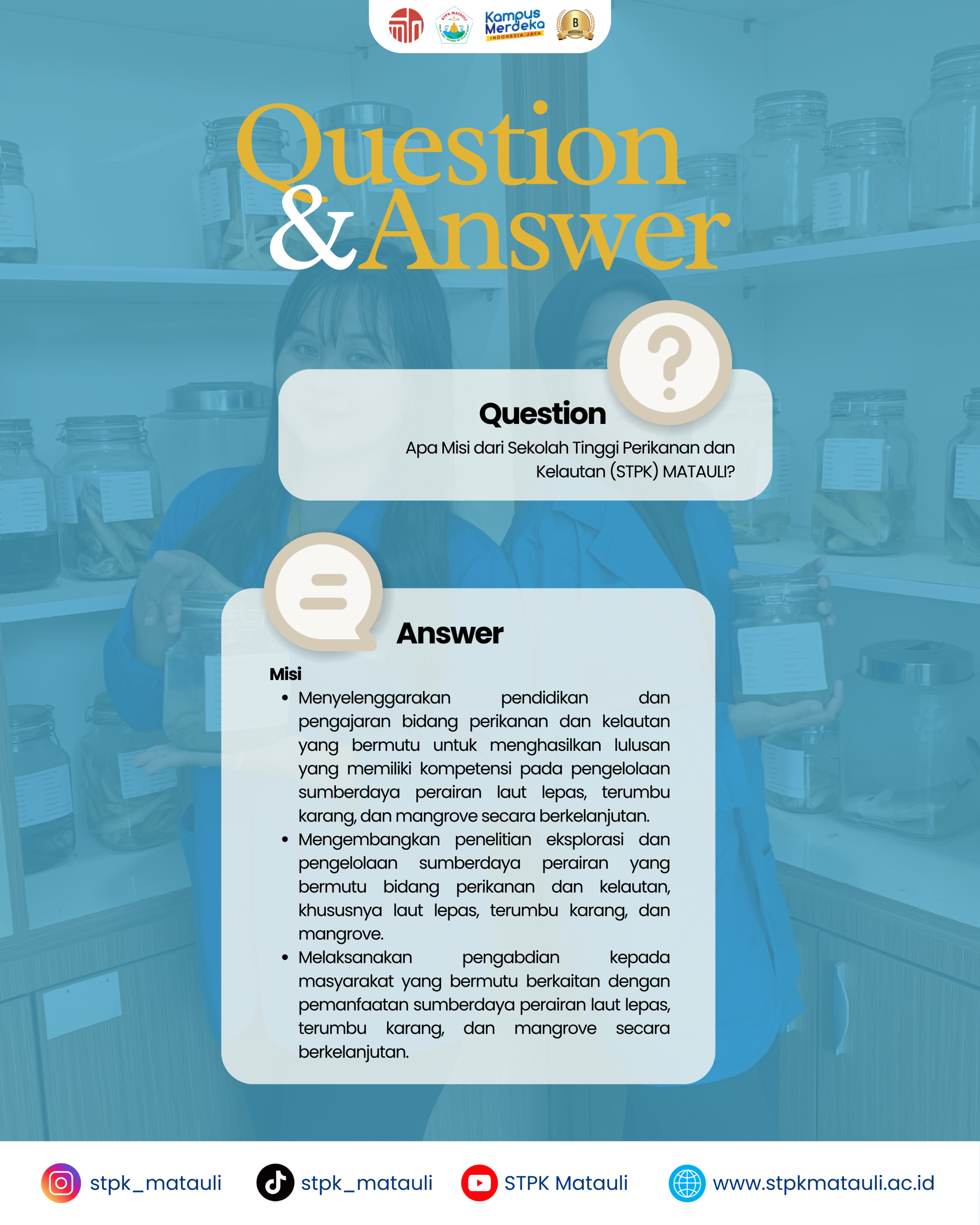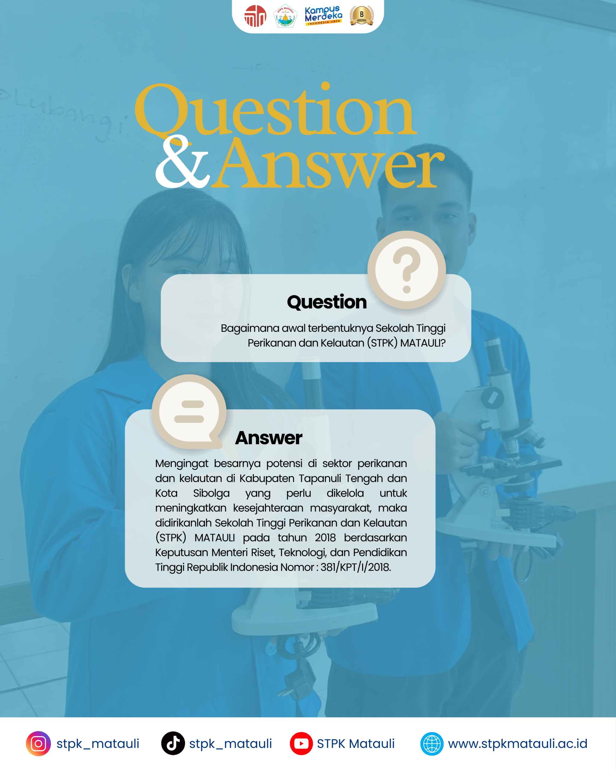 Kami mengajak generasi muda untuk bergabung bersama STPK Matauli, kampus vokasi bidang perikanan dan kelautan yang berkomitmen mencetak lulusan unggul, berintegritas, dan siap bersaing di dunia maritim modern.
