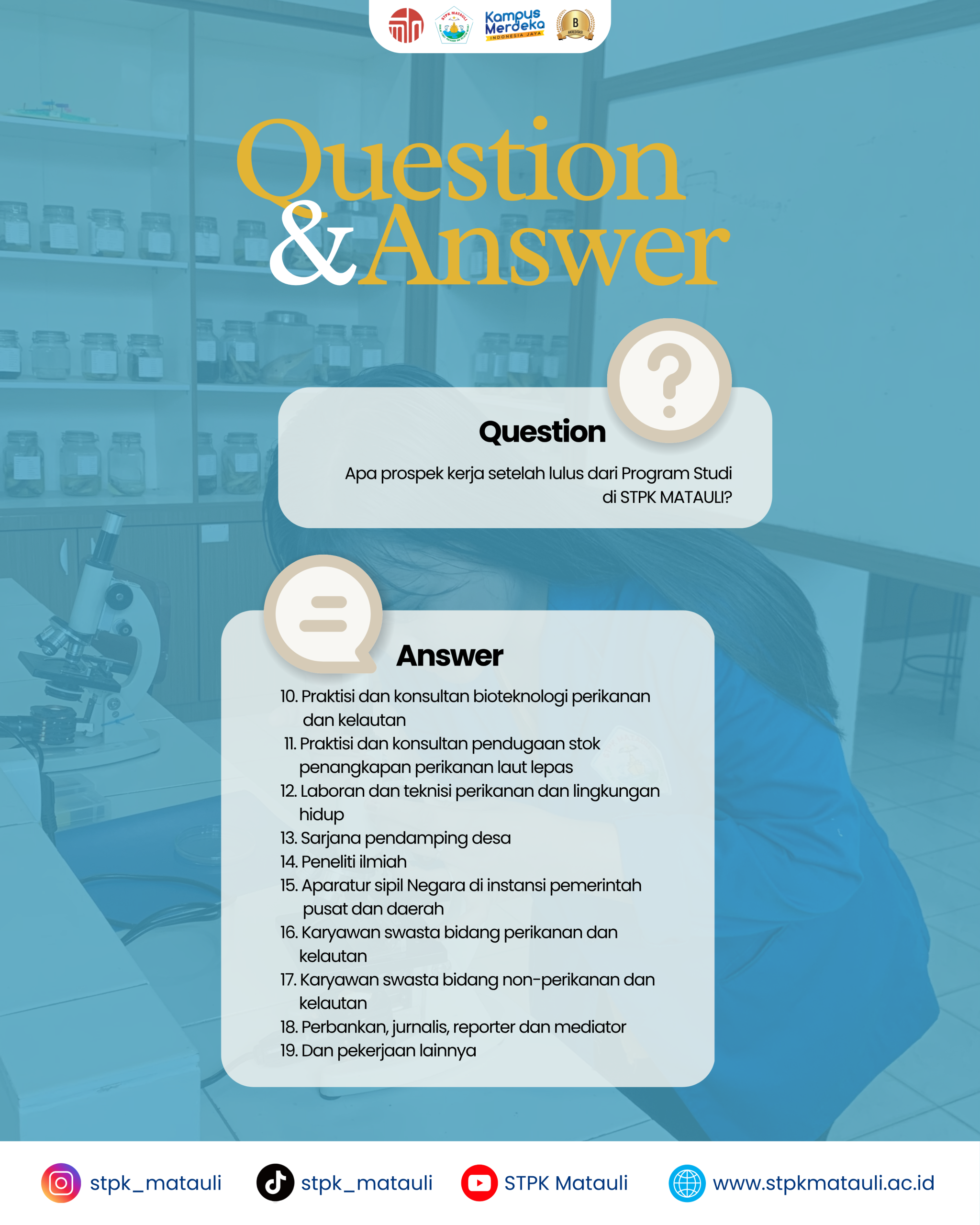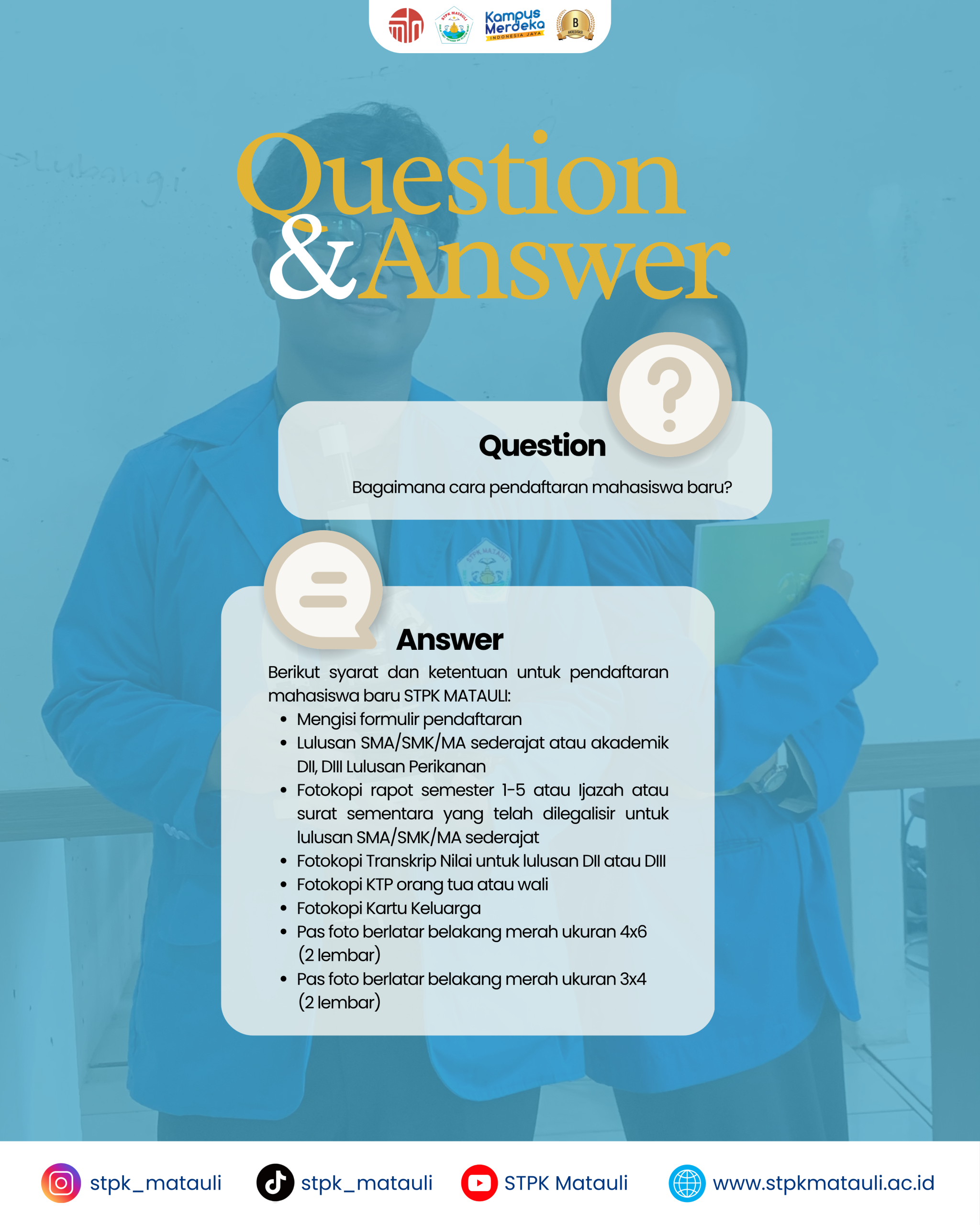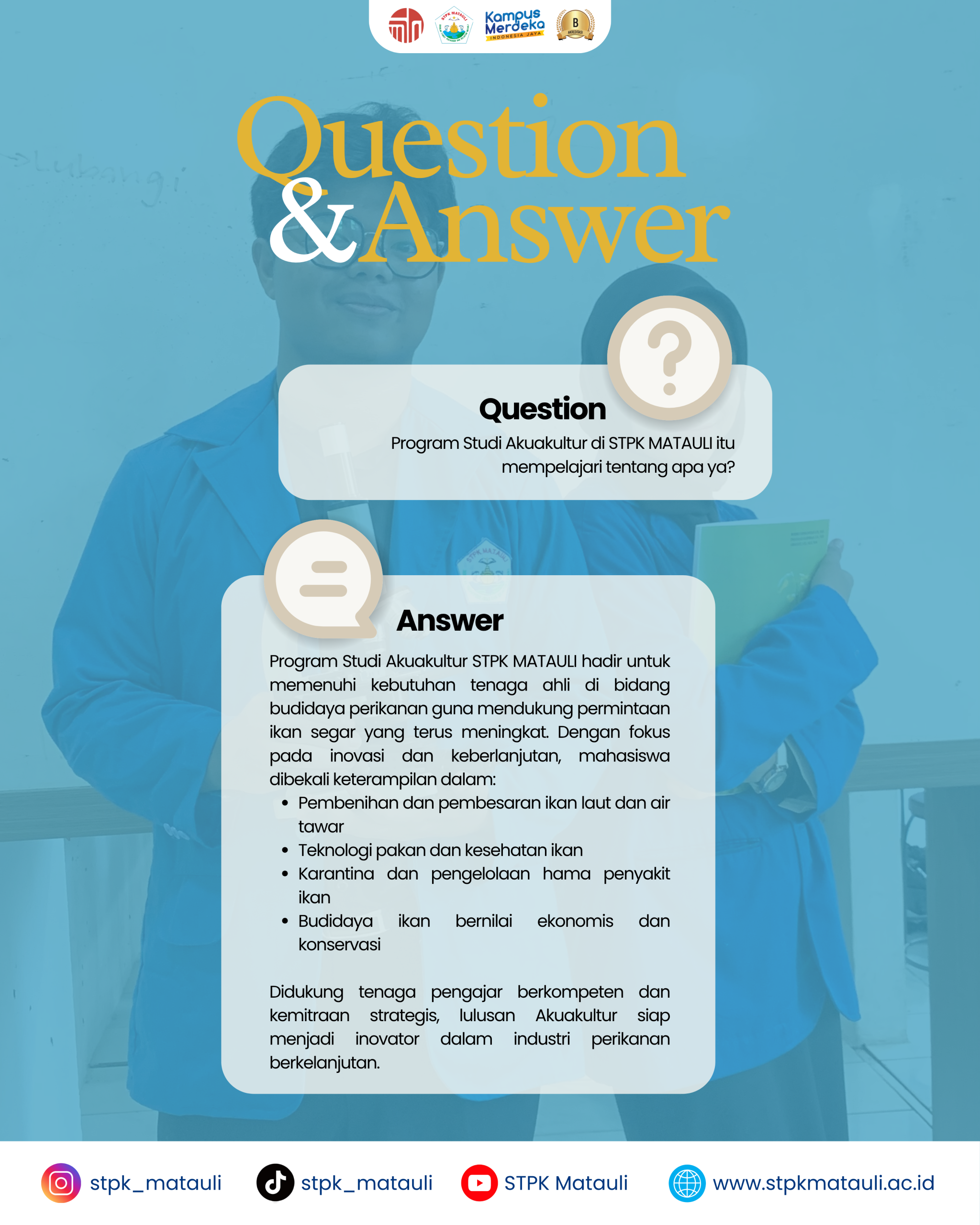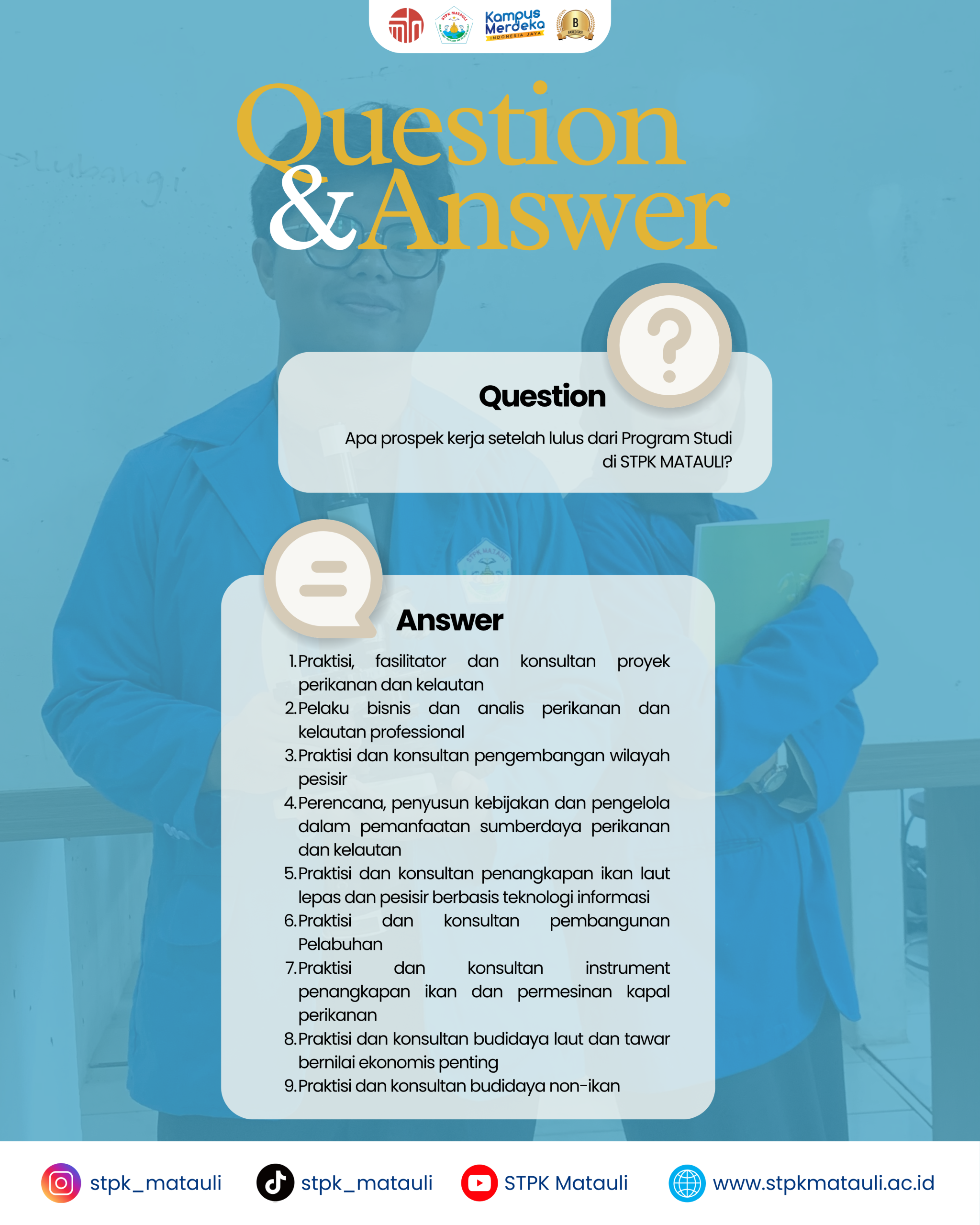 Kami mengajak generasi muda untuk bergabung bersama STPK Matauli, kampus vokasi bidang perikanan dan kelautan yang berkomitmen mencetak lulusan unggul, berintegritas, dan siap bersaing di dunia maritim modern.